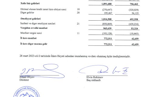 Расширение деятельности компании сопровождалось ростом административных расходов - с 439 тысяч манатов в 2021 году до 850 тысяч манатов в 2022 году.