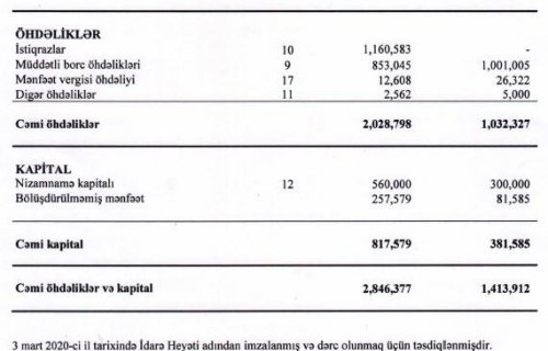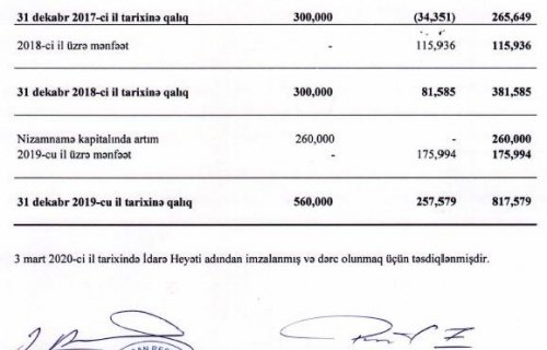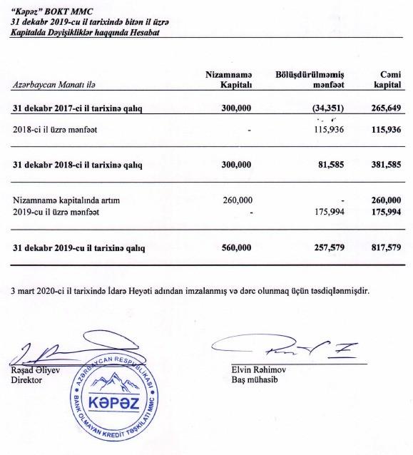 В настоящее время уставный капитал НКО «Кяпяз» составляет 560 тыс. AZN, а общий капитал - 996,575 тыс. AZN, что превосходит показатель 2019 года на 178 997 AZN или 21,9%.