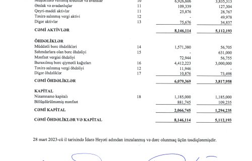 2022-ci ilin maliyyə hesabatı